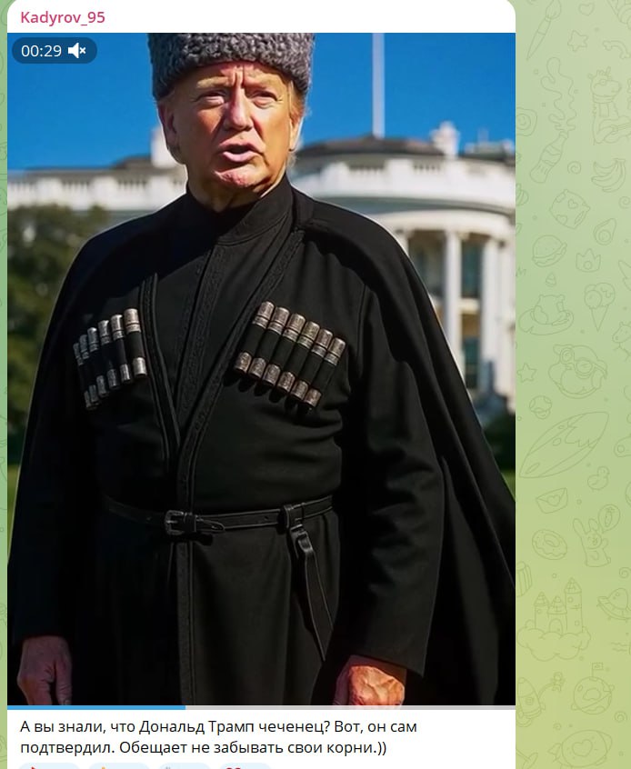 Просмотров: 297Комментарии: 02 сентября 2025 г.Гжель / КадыровКонечно, Трамп - чеченец... а Кадыров - русский мужик из Рязани. Видеоподтверждение нужно? https://t.me/videoCelnozor/7278 Хотя не - мож из Шотла...Мы - ( М и Ж ) можем д...