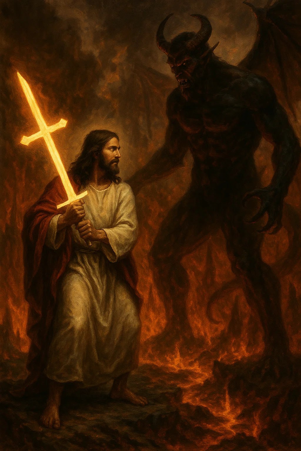 Уровень интеллекта: Иисус борецца с ацким Сотоннной... П.С. вопросы - откуда и нахера появился враг бога, если был только Бог в начале каком-то и в чем заключается (достижение целей СВО) победы - не уточняется. Процесс ради процесса? так по божески логично...